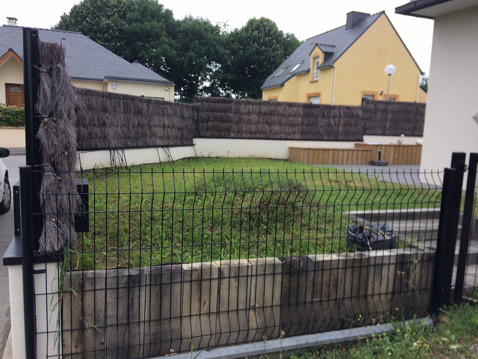 La majorité de l’espace avant habillage est recouvert d’un geo textile limitant la pousse des mauvaises herbes.